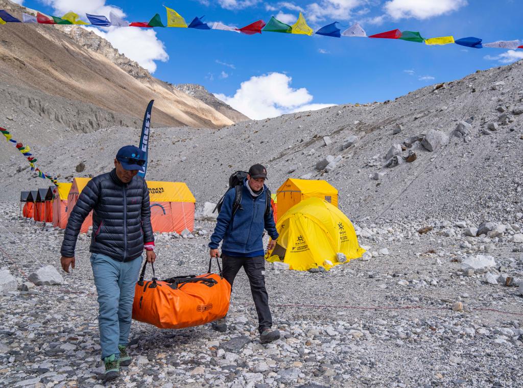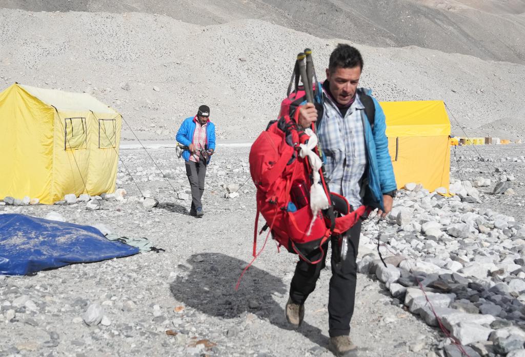 哈康·埃兰森(右)正在搬运自己的登山物资(5月24日摄)。新华社记者 孙非 摄