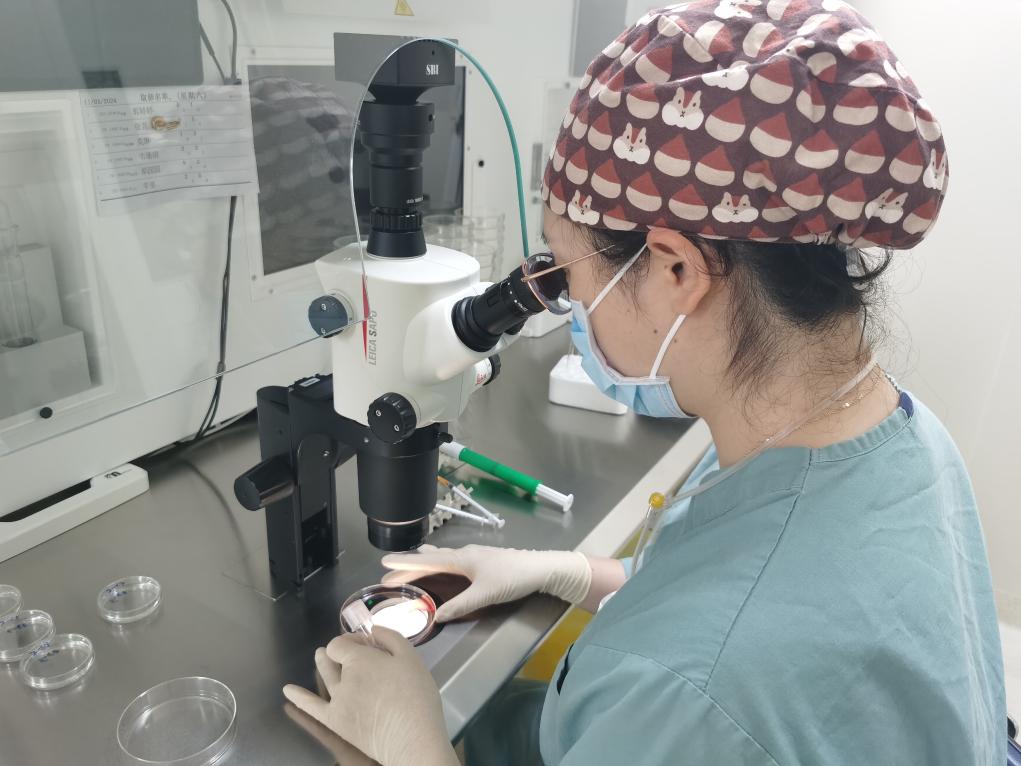 2024年5月,北京协和医院生殖中心实验室工作人员正在收集卵子。北京协和医院供图
