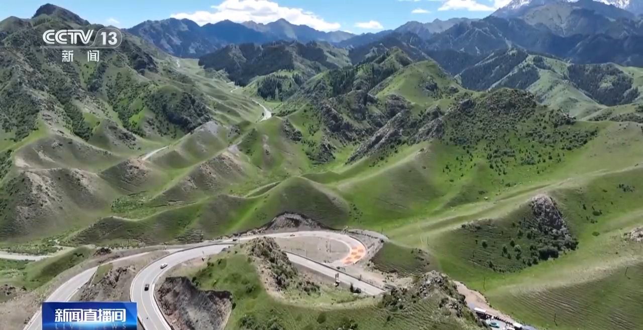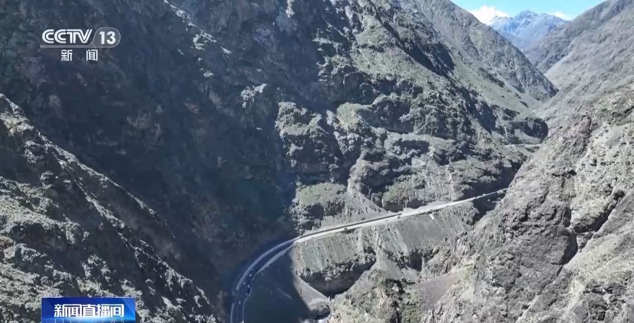总台记者 刘菲:这一路可以说是崖壁陡峭、岩石突兀,这一侧是垂直接近90度的山体,上下的高差达到200多米。在这条公路上行驶,可以感觉到翻过一座险要山峰,另一侧就邂逅了高山草甸的绿意。