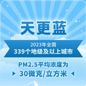 天更蓝——全国339个地级及以上城市PM2.5平均浓度为30微克/立方米;