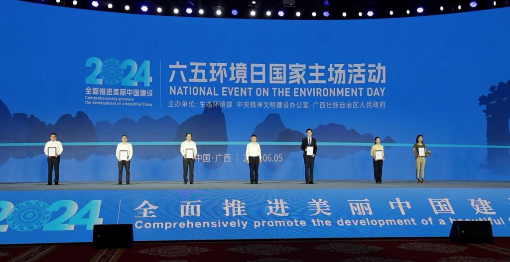 6月5日,在2024年六五环境日国家主场活动现场,生态环境部公布了2024年度生态环境特邀观察员名单。生态环境部部长黄润秋向生态环境特邀观察员颁授聘书。新华社记者梁舜摄