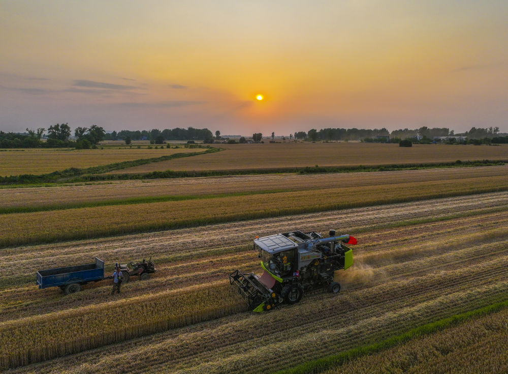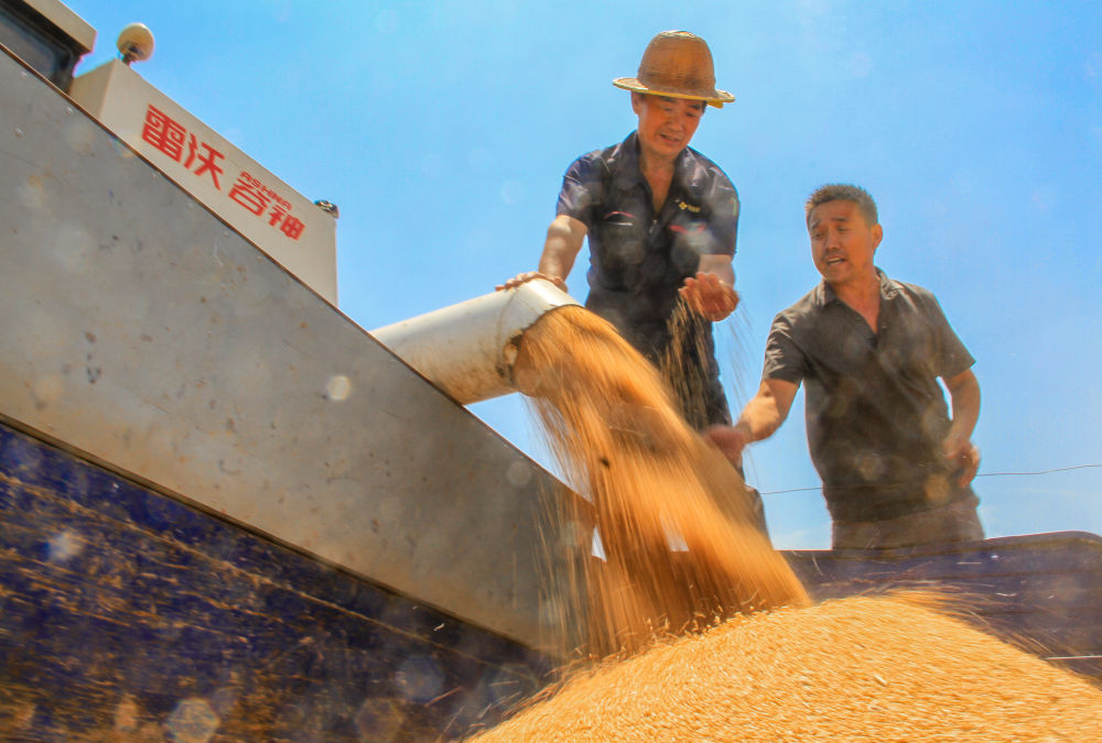 5月28日,在河南省商丘市夏邑县会亭镇郭吕庄村,村民在田间收获小麦。 新华社发(王高超摄)