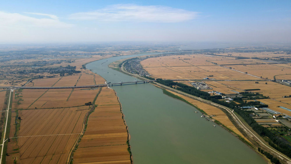 5月29日在蚌埠市五河县朱顶镇拍摄的淮河两岸的麦田(无人机照片)。 新华社记者 黄博涵 摄