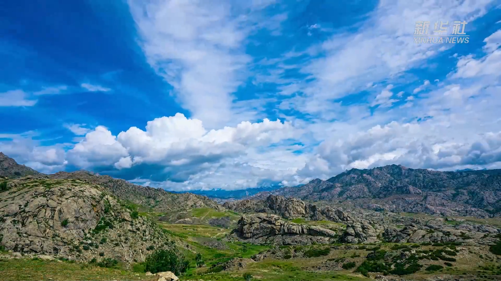 一场夏雨过后,新疆阿勒泰地区福海县沙尔布拉克草原上空出现云海景观。天空中云雾缭绕,仿佛一层薄纱覆盖着广袤的草原,远处的群山在云海中若隐若现,构成了一幅美丽的画卷。