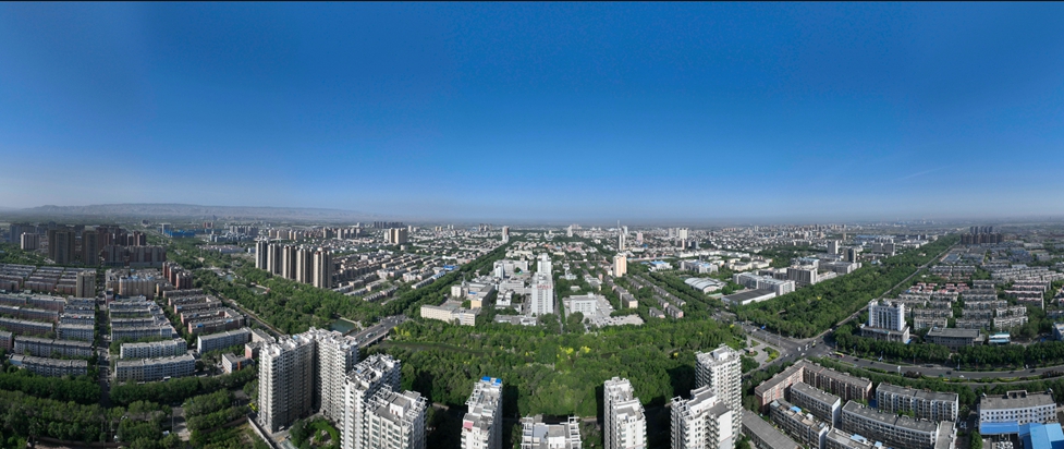 新疆生产建设兵团第八师石河子市城区(2024年5月15日摄,无人机全景照片)。新华社记者 胡虎虎 摄