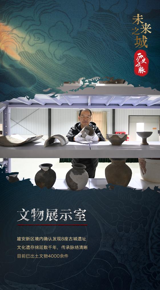“未来之城”雄安,生长在深厚文化积淀之上,赓续数千年文明薪火。当地实施考古前置,对全域1770平方公里进行拉网式文物调查和勘察。目前已开展专题考古10项、基本建设考古23项,出土文物4000余件,确认不可移动文物263处,其中包括8座古城遗址;在大规模建设的同时,注重传承弘扬优秀传统文化,让新城市有老场所,群众能“记得住乡愁”,按照古树不挪、古建筑不拆、古牌坊不搬的原则,已登记保护物质类乡愁保护点2600多项;有形的文物古迹、古树古宅被保护起来了,无形的非物质文化遗产也得到传承弘扬。如今,白洋淀传统造船技艺、雄县古乐、鹰爪翻子拳等非遗项目在这里得到保护传承。