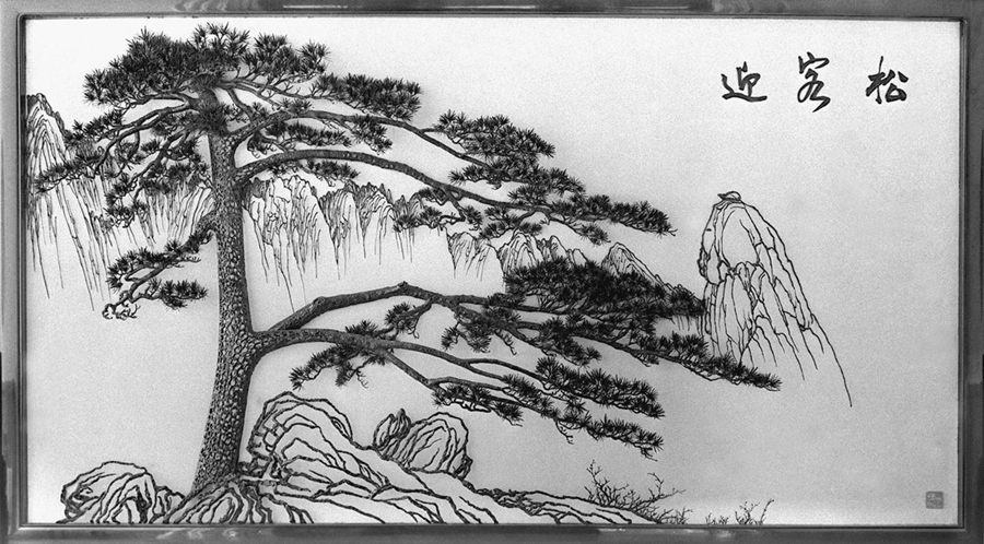 以黄山迎客松为主题制作的“铁画”。