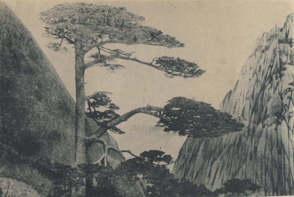 1914年拍摄的黄山迎客松(翻拍资料照片)。