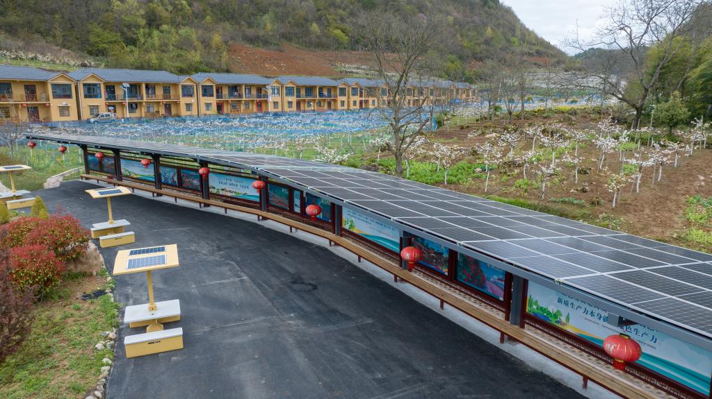 “这个桌子很特别,可以给手机无线充电……”几天前,到湖北省恩施州巴东县信陵镇土店子村游玩的游客杨兰发现,村里美食街长廊一旁的几套桌椅安装有光伏板,长廊顶部也都安装有光伏板。