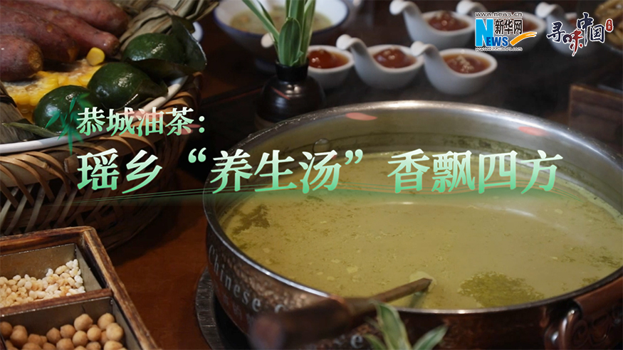 “小锅带嘴听槌响,佐料入盘飘室香。三杯饮后人难去,君愿恭城为故乡。”广西恭城油茶有千年的历史,是独具特色的瑶乡传统饮食。油茶以茶叶、生姜、花生、蒜米等捶打,以沸水熬煮制成茶饮,鲜香爽口还能滋补养生,是瑶乡健康长寿的“养生汤”。2021年瑶族油茶习俗被列为国家级非物质文化遗产代表性项目名录。