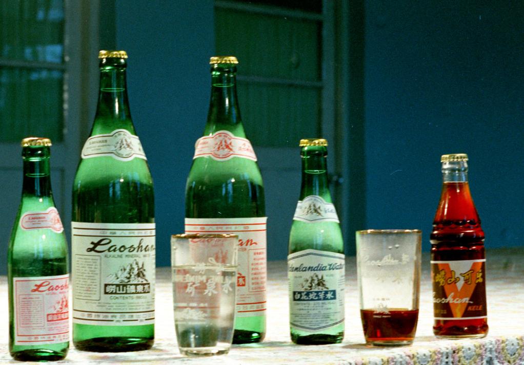 崂山矿泉水部分产品:淡味崂山矿泉水、咸味崂山矿泉水、崂山可乐、白花蛇草水等(1980年资料照片)。