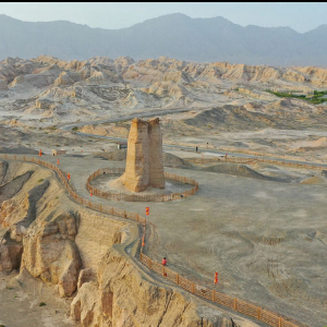 新疆库车市拍摄的克孜尔尕哈烽燧(2023年9月8日摄)。