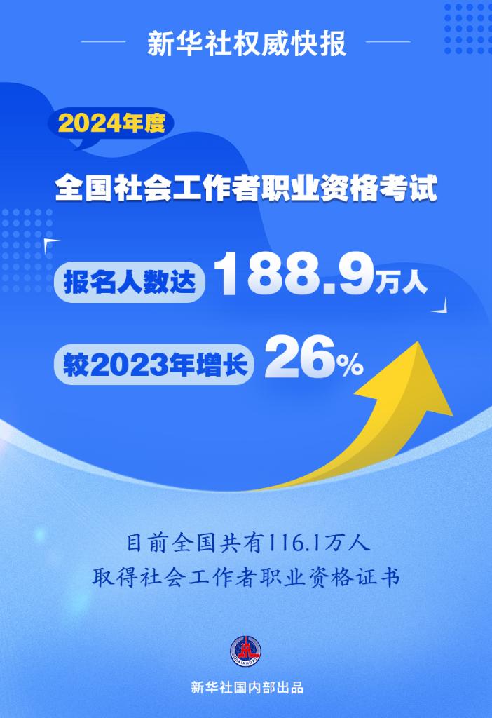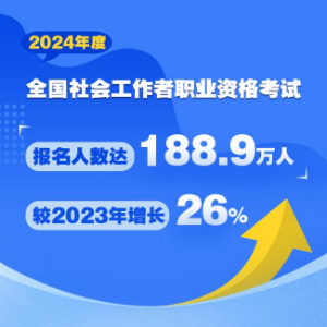 2024年度全国社会工作者职业资格考试于6月15日至16日举行。记者16日从中央社会工作部获悉,今年考试报名人数达188.9万人,较2023年增长26%,再创历史新高。