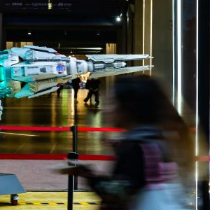 图为2023年“建发·三体沉浸式艺术展”入口处的装置作品——三体战舰“自然选择”号模型。新华社记者沈伯韩 摄