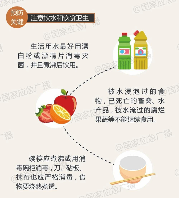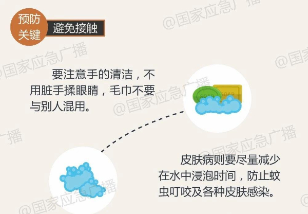 暴雨洪水不仅会带来泥石流、滑坡等次生灾害,还会污染水源和引发传染病疫情,请及时预防,身体不适时迅速就医。