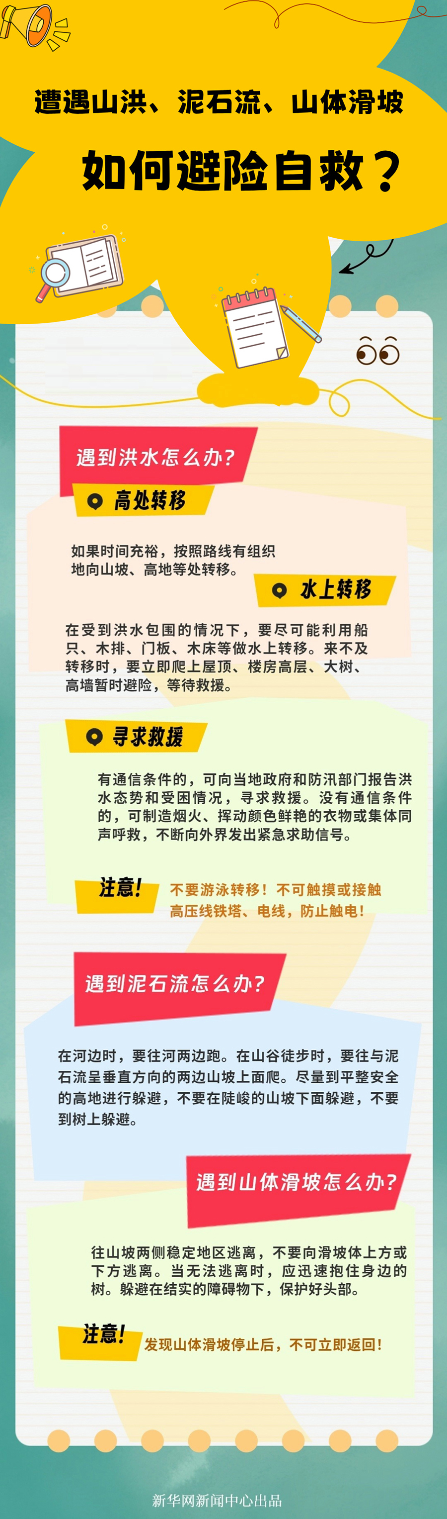 强降雨天气极易引发山洪、泥石流、山体滑坡等自然灾害,遇到突发情况,如何避险自救?