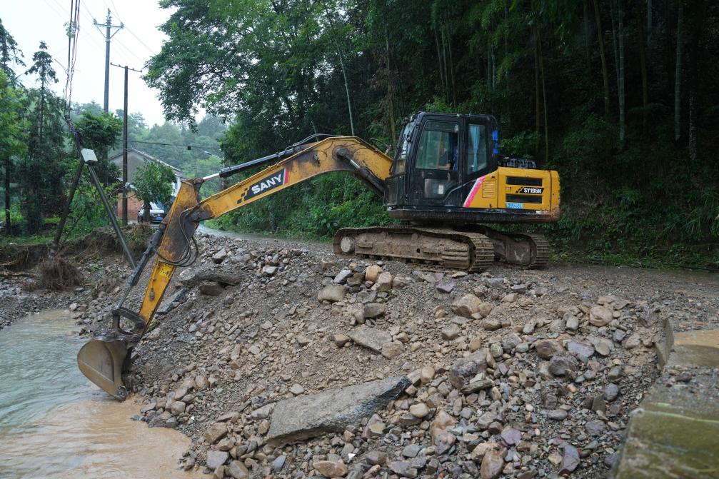 新华社长沙6月25日电 特写:夷望溪镇的村民挖机抢险队