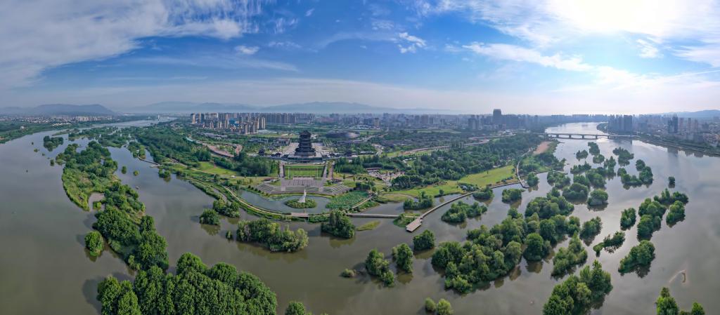 图为陕西省汉中市天汉湿地公园(6月23日摄,无人机照片)。新华社发(刘宇源摄)