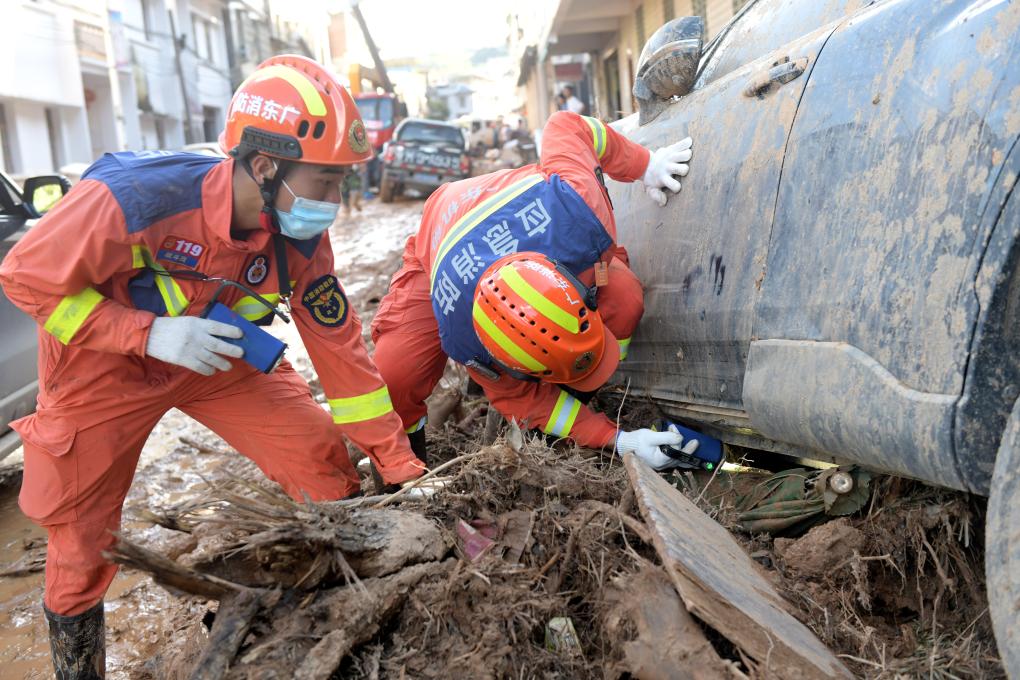 6月20日,救援人员在广东省梅州市平远县泗水镇开展救援工作。新华社记者 卢汉欣 摄