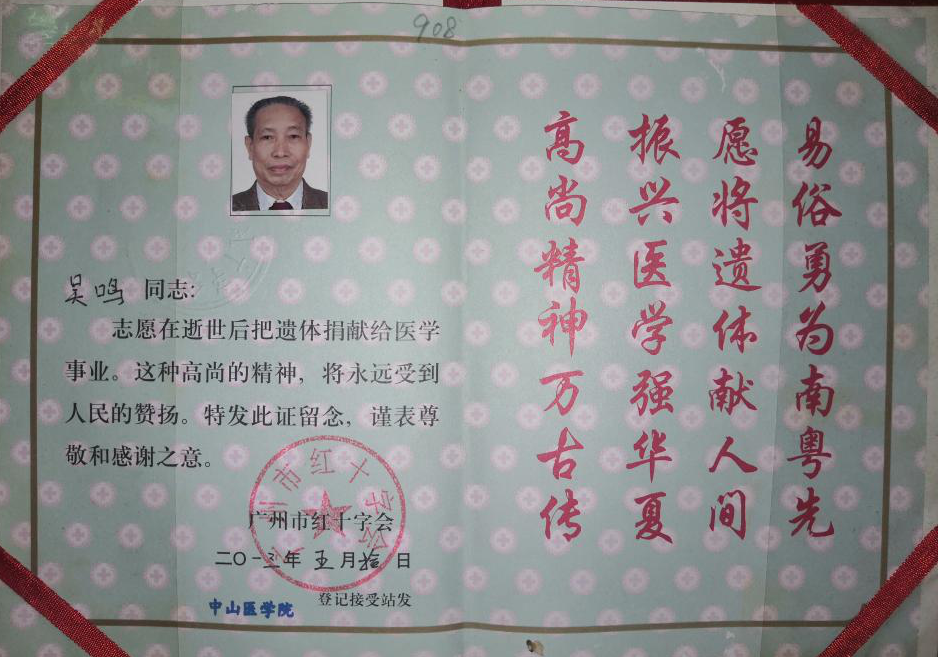 2013年,父亲在住院期间看到宣传,了解到医学院校普遍存在遗体标本紧缺的情况,于是他瞒着我们递交了志愿捐献遗体申请登记表,事后才告诉我们。父亲去年因病离世,在告别仪式结束后,我们按照登记,进行了捐献,完成了他的遗愿。