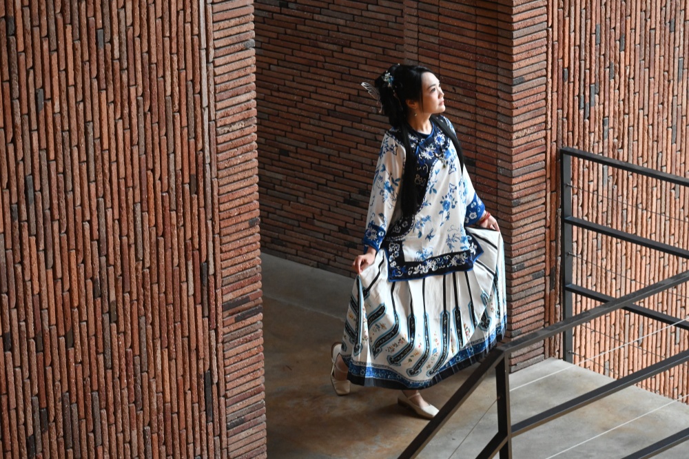 2024年6月5日,一位身穿传统服装的游客在江西景德镇御窑博物馆内游览。新华社记者 刘力航 摄