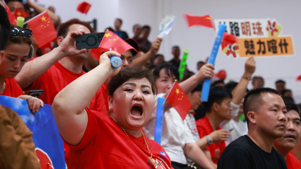比赛现场为球员们加油助威的观众。(新华社发 马甲兵 摄)