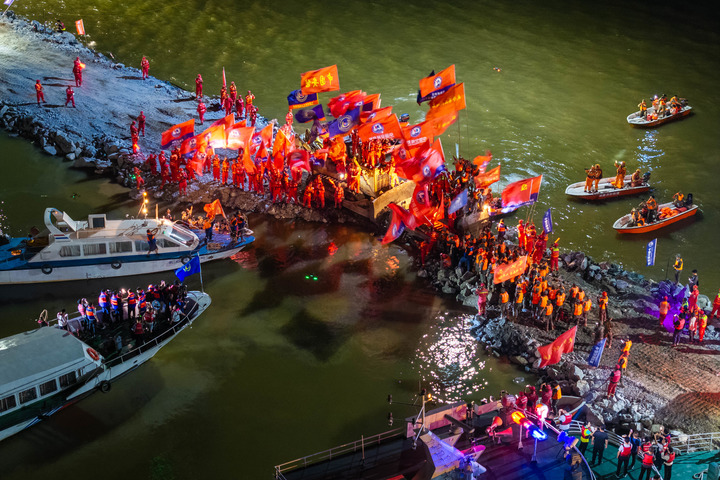 8日22时31分,湖南华容县团洲垸洞庭湖一线大堤上,灯火通明。此刻,随着一车物料倒入,推土机迅速跟进,将物料掺入水中,参与作业的人们高举红旗,呐喊声响彻云霄。226米的大堤决口完成封堵!