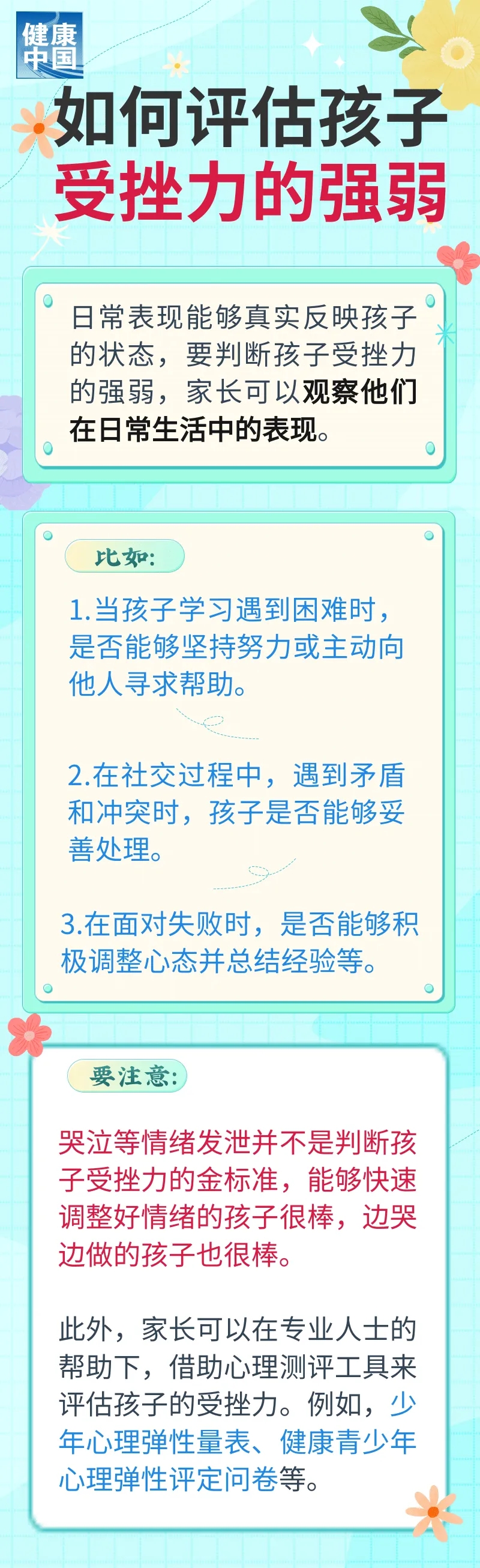 对孩子来说,挫折是他们成长中的重要一环。在遇到挫折时,心态的调整依靠一个关键的能力——受挫力,即面对挫折时的承受能力。家长要时常给孩子打个心理“疫苗”,提高其对挫折的“免疫力”。