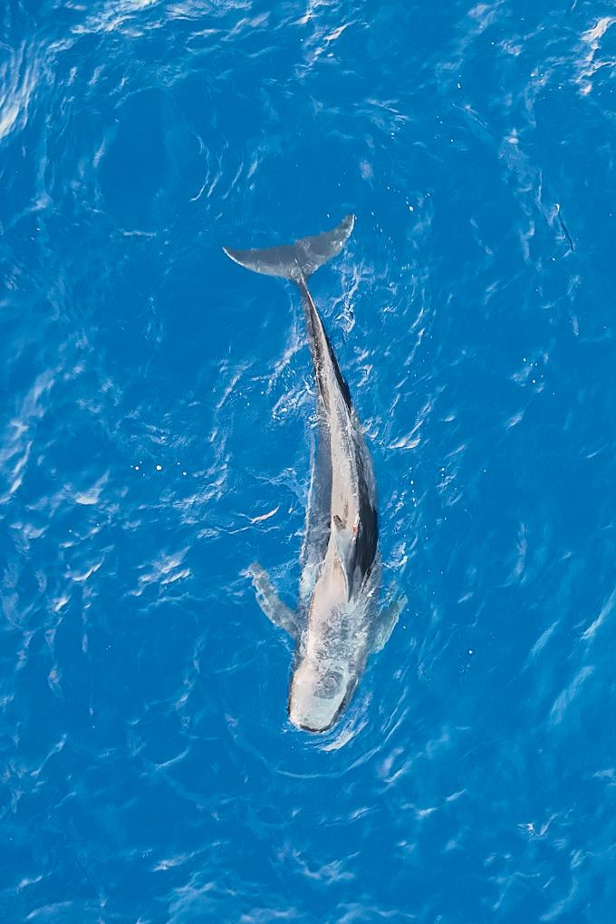 7月4日,我跟随考察团队前往南海,根据“海棠”信标显示的位置信息搜寻它的踪迹。在“海棠”的活动区域内,考察团队观测到了大量短肢领航鲸群体,经科研人员确认,“海棠”放归大海后生存状况良好,我也完整见证了它这趟回家之旅。
