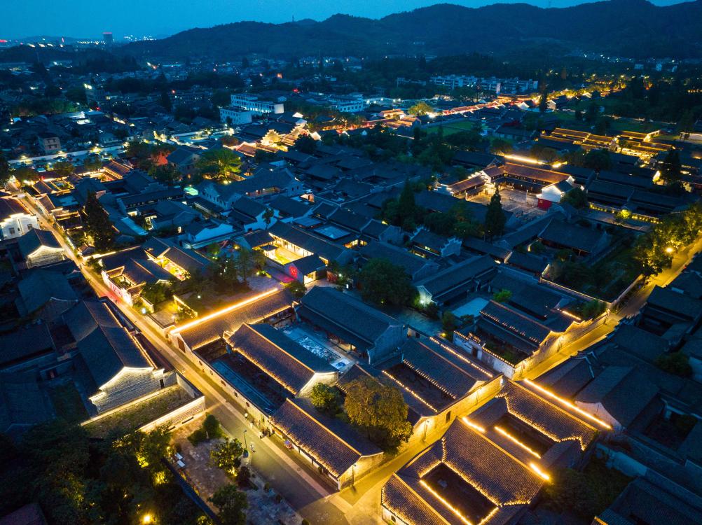 ↑这是夜色中的宁波慈城古县城古建筑群(无人机照片,7月10日摄)。