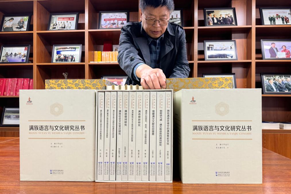黑龙江大学研究团队出版的《满族语言与文化研究丛书》(6月2日摄)。新华社记者 杨思琪 摄