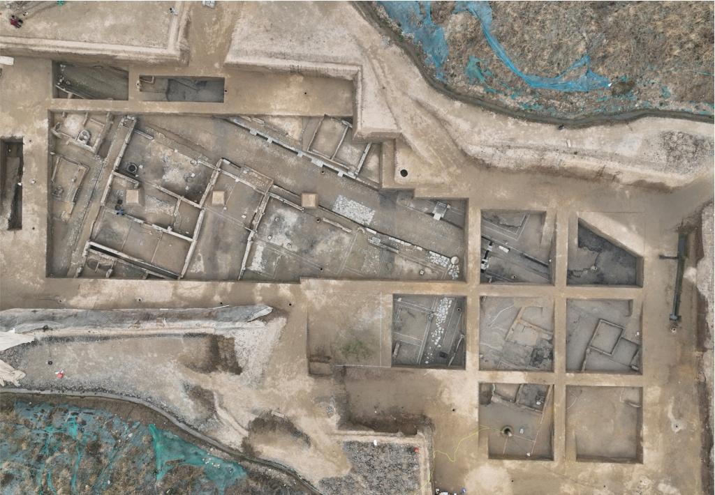 板闸镇遗址发掘区航拍图。(受访单位供图)