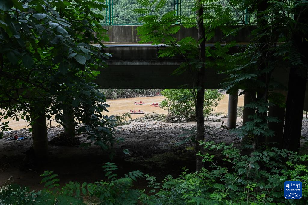 7月20日,救援人员在陕西柞水高速公路桥梁垮塌现场进行搜救。新华社记者 邹竞一 摄