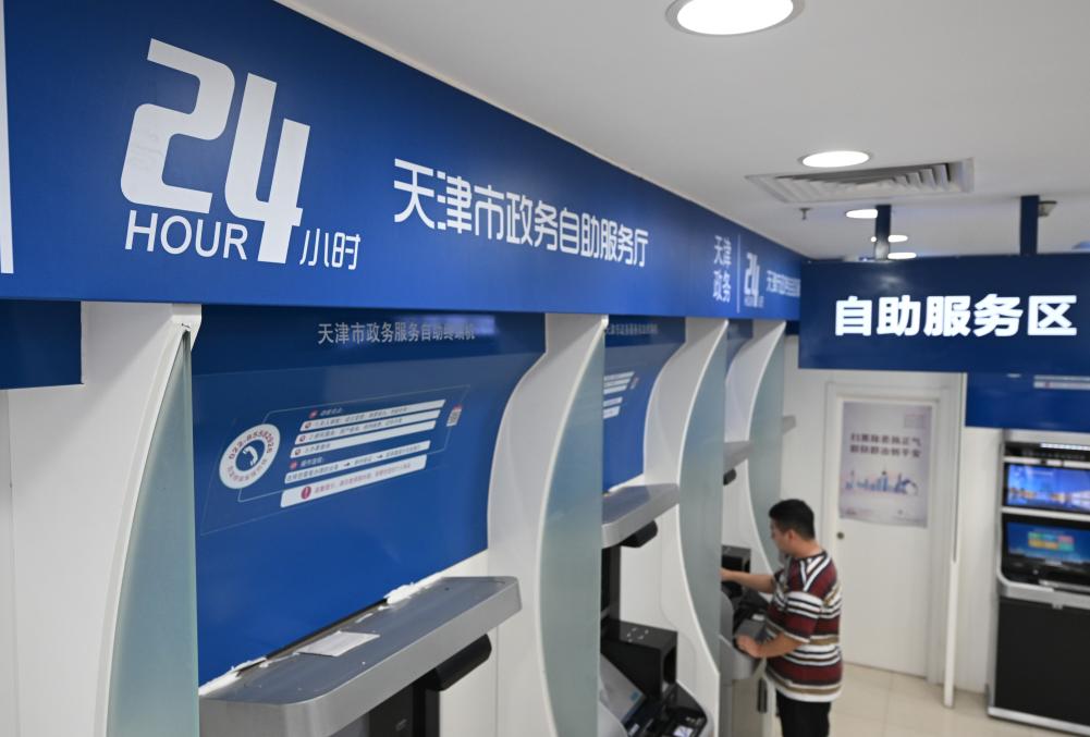市民在天津市河西区政务服务中心24小时自助服务厅办理业务(7月16日摄)。