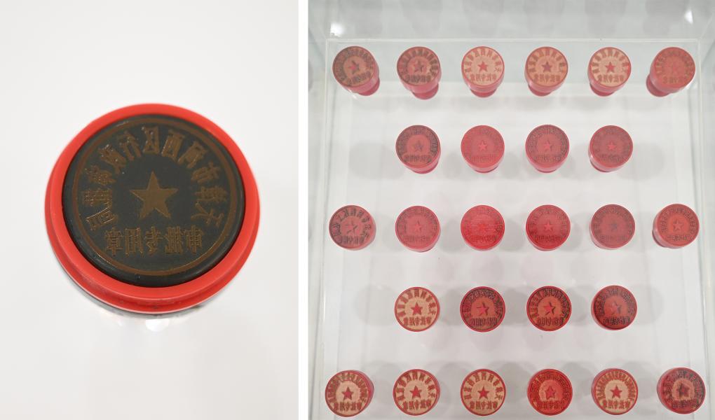 拼版照片:2015年,天津市河西区将26个部门的行政审批印章收回,整合成左图一枚审批用印章,实现“一枚印章管审批”(7月16日摄)。