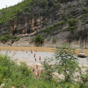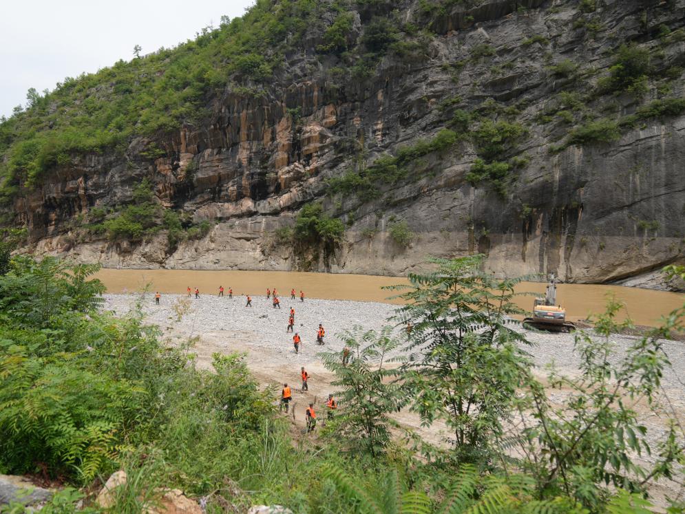 记者当天从桥梁垮塌发生地一路沿金钱河向下游行进,沿途看到,救援人员在多个作业点使用挖掘机、舟艇、无人机等设备进行搜救。由于地形险峻、道路狭窄,在一些作业点,救援人员要使用绳索才能下到河岸边开展工作。