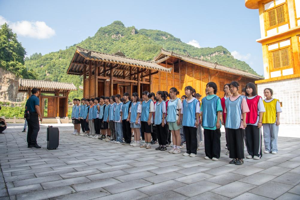在石柱土家族自治县中益乡,中小学生研学团队在老师的带领下开展研学课程。新华社记者唐奕 摄
