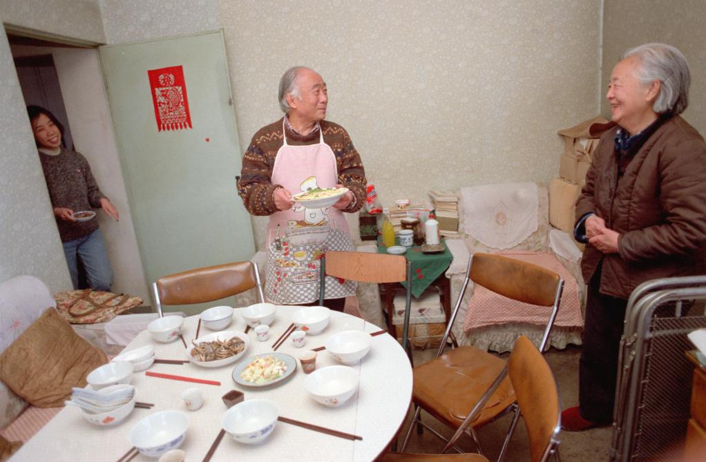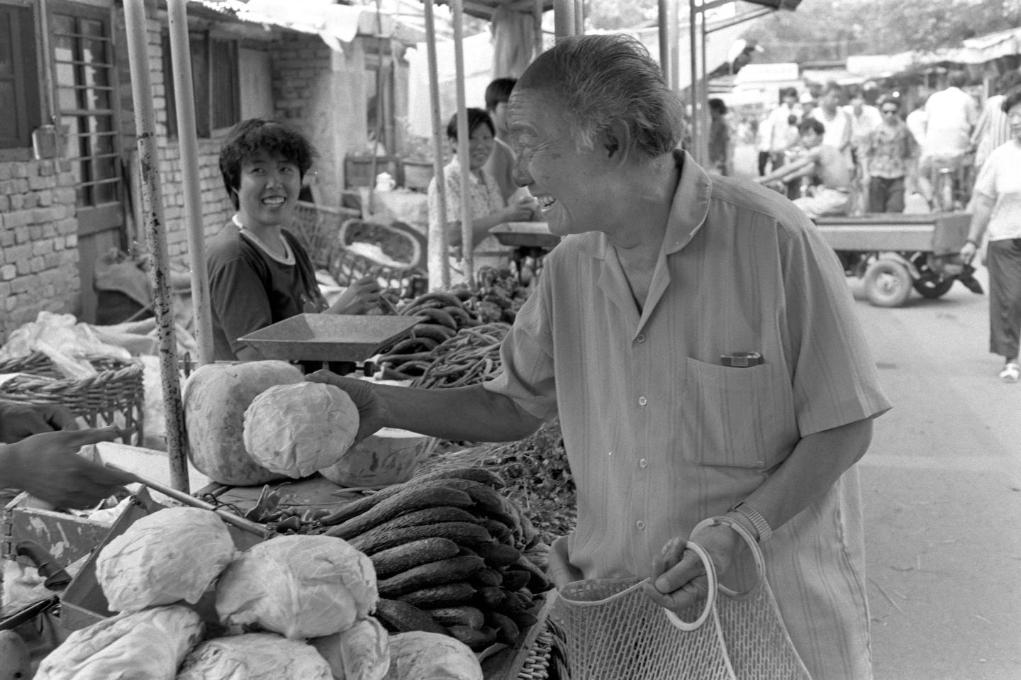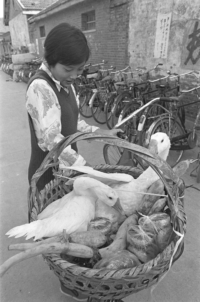 1991年中秋节前,高邮一位姑娘正准备给姨妈家送去传统的中秋礼品——肥鹅、鲜藕、月饼。