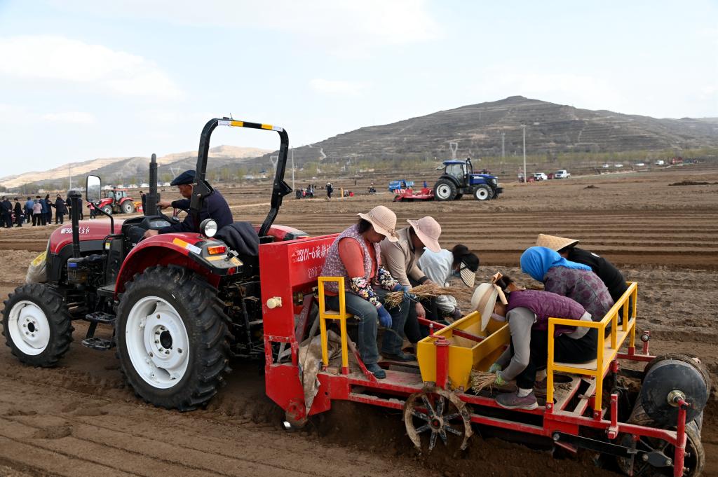 2024年春,在陇西县一处中药材生产基地,中药材移栽机在作业。(崔翔龙 摄)