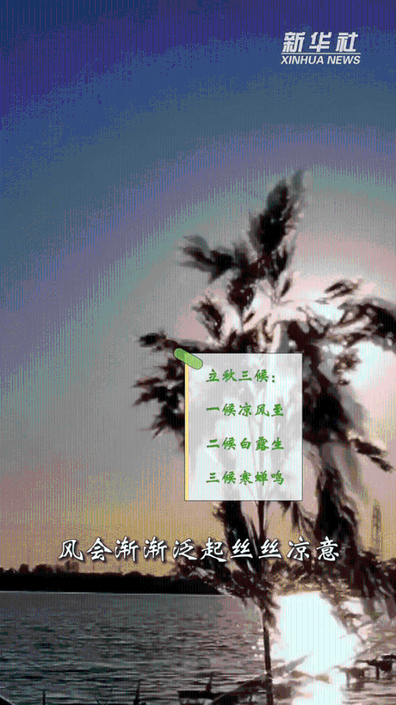 我国古人将立秋分为三候:一候凉风至;二候白露生;三候寒蝉鸣。意思是,立秋过后,风会渐渐泛起凉意。接着,清晨时分,大地上会有雾气产生。同时,感阴而鸣的寒蝉也开始鸣叫。