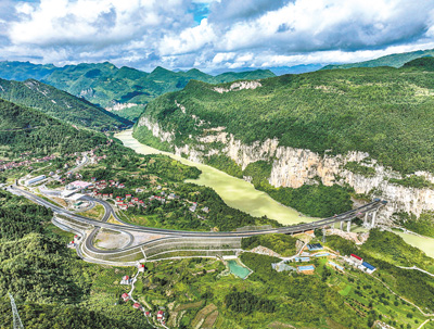 交通线慢慢勾勒出风景线:双堡特大桥跨越三座山头,于两道峡谷间架起“双彩虹”;原本作为施工便桥的索道桥意外变身“网红桥”,吸引游客前来打卡。随着两座桥梁走红,“藏在深闺无人识”的青龙峡景区客流量持续攀升,交通流量成为发展增量。