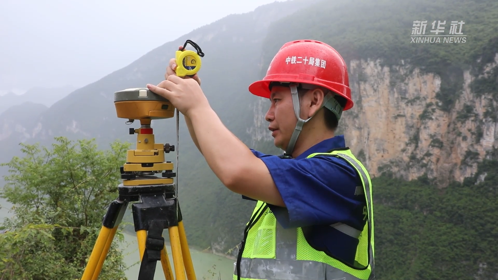 阿蓬江大桥位于武陵山区腹地的重庆市酉阳土家族苗族自治县龚滩镇,大桥直连的龚滩隧道出口,位于垂直于江面的近200米高的崖壁上。此处崖壁属危岩体组成的复杂地质,落石隐患极大,部分桥梁结构不得不采用深入崖壁的“隧中桥”形式修建。要实现这样的“隧中桥”,控制误差、精准测量是第一步。