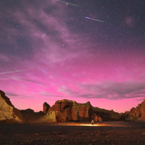“我们8日抵达哈密后就开始了观测活动。越是临近极大期,观测到的流星数量越多。这些流星中,很多都是‘红头绿尾’,其中不乏异常明亮的火流星。11日和12日晚,我们均做了直播,将浪漫的流星雨分享给国内网友,一起感受这场星空的年度盛宴。值得一提的是,12日还发生了大地磁暴,我们因此幸运地遇上了极光。有了极光的加持,让这场流星雨变得更加美丽。”王俊峰说。