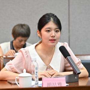 7月26日,湖南汽车工程职业大学大一学生胡喆雅在座谈会上发言。新华社记者 李鑫 摄