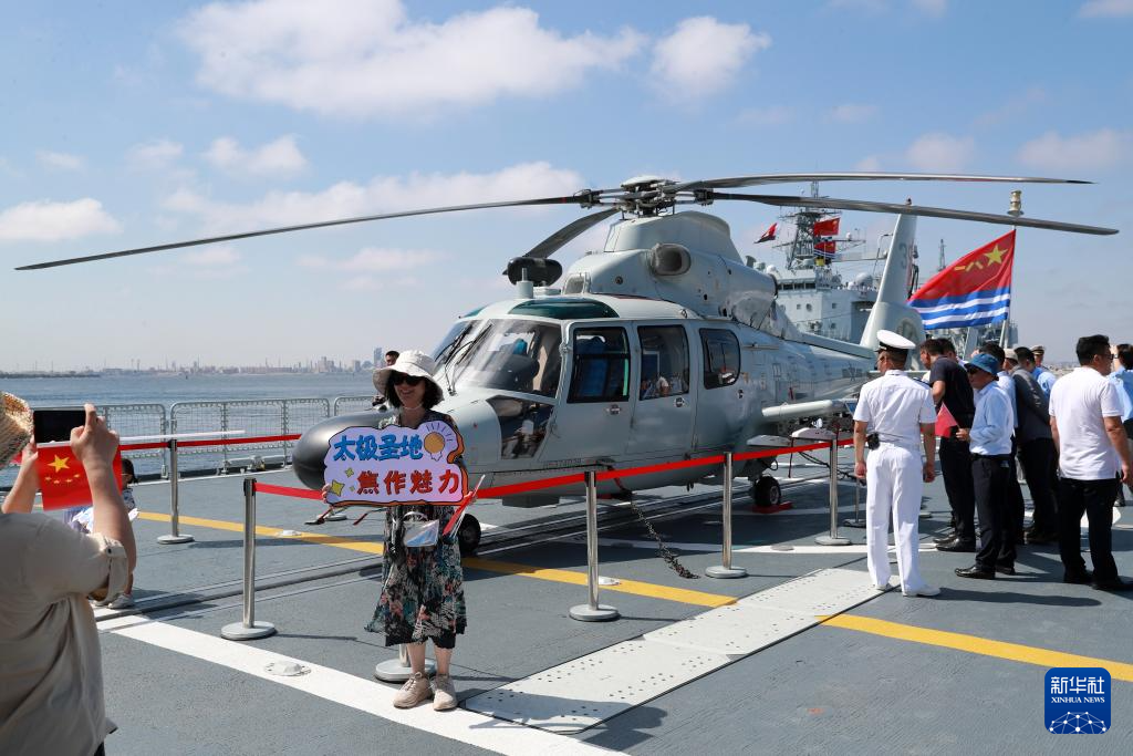 8月15日,中国海军第46批护航编队焦作舰、洪湖舰抵达埃及亚历山大港,欢迎人群登上焦作舰参观并拍照留念。新华社记者 隋先凯 摄