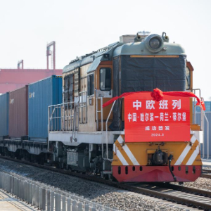 2024年3月14日,中欧班列(哈尔滨—蒂尔堡)准备从哈尔滨国际集装箱中心站出发。新华社记者 张涛 摄