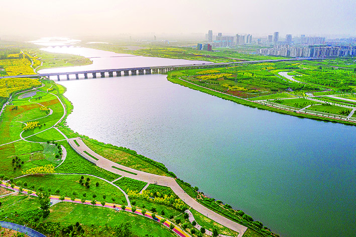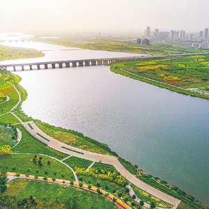 盛夏时节,19公里的石家庄市滹沱河生态区城区段,湛蓝的河水泛着微波,与沿岸的柳树国槐金叶榆、草地相映成趣。人们赏花观水,河面上不时有水鸟拂过。