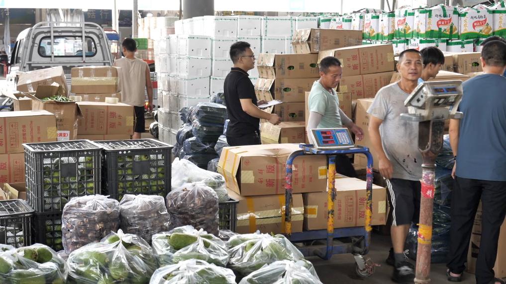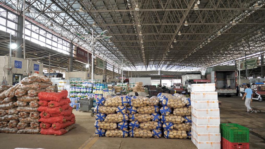 在朴朴超市福州总仓,产自河北的流星包菜、云南白菜、山东西红柿等蔬菜有序排列。福州朴朴电子商务有限公司公共事务经理林夏淅说,今年8月1日至8月19日,朴朴超市整体的蔬菜平均售价环比7月增长4.9%。