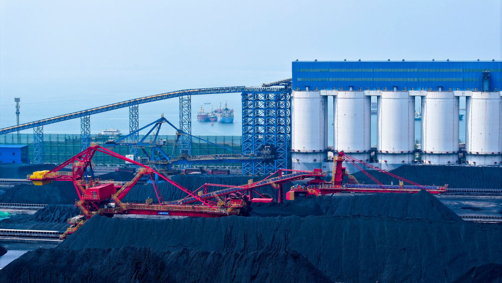 从空中俯瞰山东港口日照港,瓦日铁路、新菏兖日铁路、日濮洛输油管道,如一条条能源“动脉”,在此汇聚。