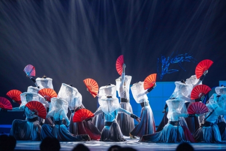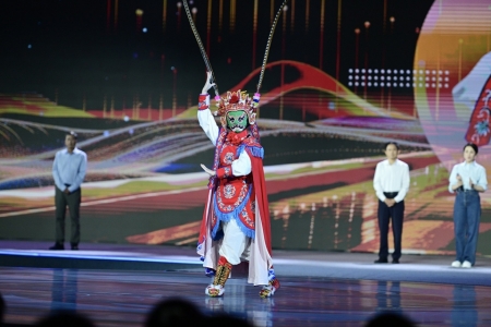 8月27日,成都,中国网络文明大会“未来之夜”在电子科技大学精彩启幕。图为民乐武术表演《侠客行》。